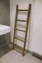 Met deze massief teakhouten decoratieve badkamer ladder van 150 cm of 175 cm breng je de huiselijke sfeer helemaal terug in debadkamer. De ladder wordt als geheel bij je thuisbezorgd. De Teakhouten ladder wordt zonder bevestiging geleverd. Je kan de trap dus eenvoudig tegen elk gewenste muur plaatsen. De breedte van de handdoekladder is ongeveer 50 cm. Dit kunnen wij niet met 100% zekerheid zeggen aangezen het een natuurlijk product is.