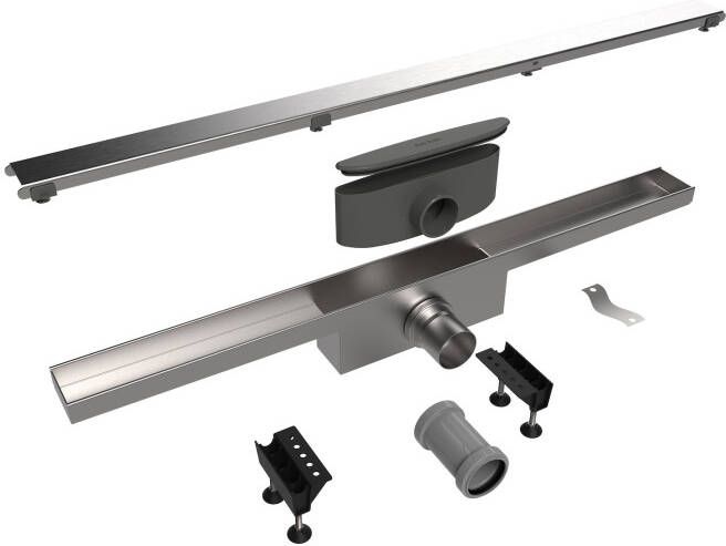 Easydrain Compact 30 Zero douchegoot, (lxbxh) 1000x60x20mm, uitwendige buisdiameter 40mm, richting uitlaat horizontaal, rechthoekig, inbouwdiepte 63mm, verstelbare hoogte, met rooster, lengte rooster 1000mm, breedte rooster 45mm, hoogte rooster 20mm, dikte rooster 1.2mm, goot roestvaststaal (RVS),