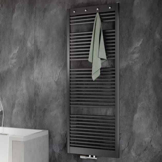 De HSK Line Pro badkamerradiator voor warm water of gemengd gebruik verrijkt uw spa-achtige oase in stijlvol grafietzwart of wit. De vier handdoekhaken zijn bijzonder praktisch: hiermee kunt u uw handdoeken voorverwarmen of snel drogen.Geniet van de behaaglijke warmte van deze badkamerradiator. Hij is geschikt voor aansluiting op uw centrale verwarming en heeft rechte verwarmingsbuizen. Met deze elegante badkamerradiator geniet u van heerlijke warmte, zowel 's ochtends bij het tandenpoetsen als bij het douchen.Aansluitsets (bestaande uit aansluitgarnituur en thermostaatkraan) zijn niet bij de levering inbegrepen.HSK is een Duitse merk, met als thuisbasis in het mooinatuurgebied van het Sauerland. HSK heeft zich hier van familiebedrijf tot een internationaal actief bedrijf ontwikkeld en is tegenwoordig een sterke partner in de sanitair branche. HSK heeft voor elke badkamer de passende producten.Onze sanitair expert vertelt: Aansluiting op centrale warmwaterverwarming Eenvoudige installatie vooraf Energiezuinig en milieuvriendelijk Verwarmt snel en geruisloos Gecombineerde werking mogelijk (met elektrisch verwarmingselement)Wat zit er in de doos: Handdoekradiator HSK Line Pro | 60x177.5 cm | CV en/of electrische werking | Grafiet-zwart Bevestigingset Montagehandleding