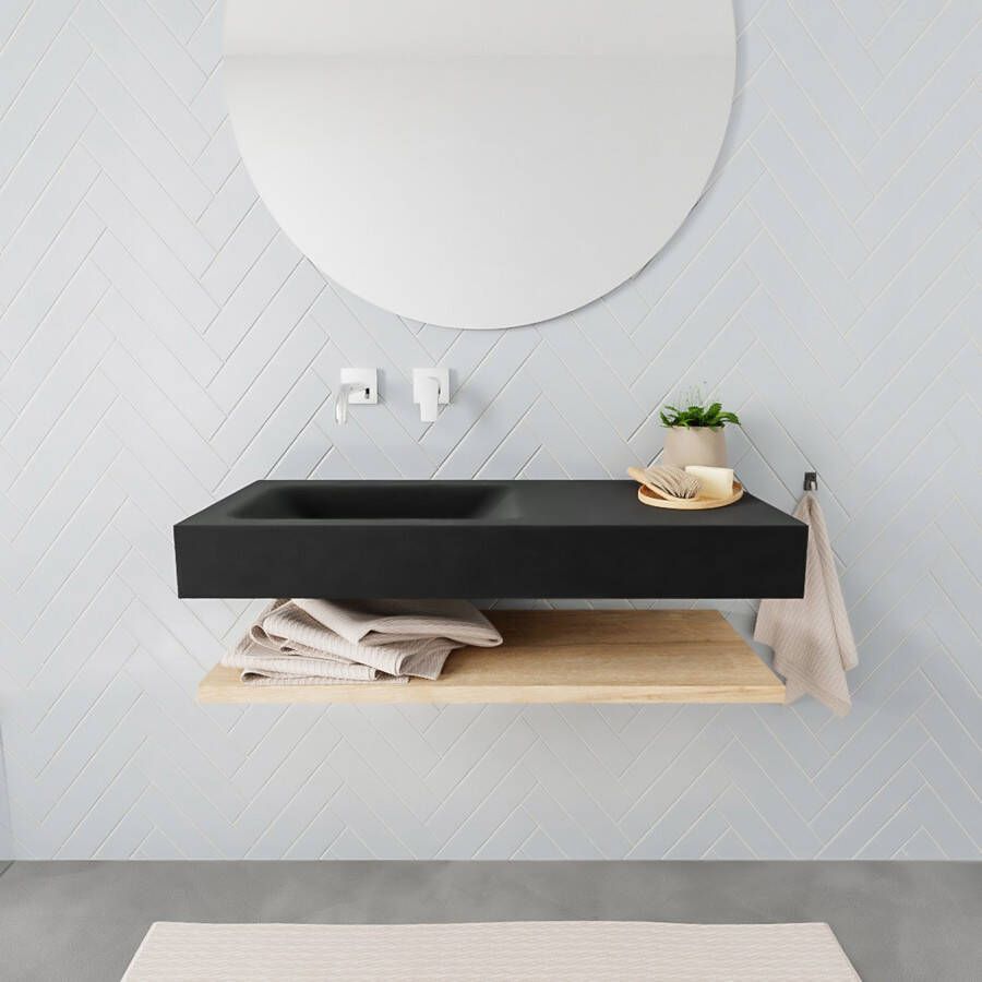 Mondiaz Alan badmeubel 100 cm planchet washed oak vrijhangend wastafel links zonder kraangat zwart