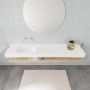 Met de Alan serie van Mondiaz kies je voor een moderne en unieke look voor jou badkamer. Het meubel is in verschillende afmetingen en kleuren leverbaar. Elk model is beschikbaar met een enkele of dubbele spoelbak, de spoelbak zijde aan de linker of rechterzijde, en natuurlijk de keuze tussen wel of geen kraangaten.Wil je meer informatie over dit meubel, of andere meubels uit de Mondiaz collectie? Dat kan! We nodigen jou graag uit in onze showroom. De verkoopmedewerkers van Sanisupershop staan voor jou klaar. Zij kunnen jou een goed advies geven en helpen bij de juiste keuze. Het is niet zo dat we elk model kunnen tonen maar met de kleurstalen en bestaande modellen krijg je een duidelijk beeld. Onze sanitair expert vertelt: Breedte: 200 cm Hoogte: 3 cm Diepte: 41 cm Materiaal onderkast: Melamine Materiaal wastafel: Solid surface Spoelbak: Enkele spoelbak (links) Lades: Geen Kleur: Washed Oak (Eiken naturel)
