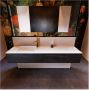 Eenvoud en elegantie dat is de perfecte omschrijving voor de prachtige meubel set uit de serie ERIN van Mondiaz. De inleg wastafel heeft een opstaande rand met een extra grote en diepe waskom. De ronde vormen van de waskom stralen een luxe zachtheid uit. De plek van de wastafelkraan op de hoek van de waskom geeft een extra speels effect. De wastafel is in de kleur Talc (wit). Het badmeubel van de set ERIN heeft een push to open lade. Zo heeft het badmeubel een mooie en gestroomlijnde uitstraling passend voor in elke badkamerstijl. Het badmeubel op deze afbeeldingen is de ERIN 200 cm met onderkast in de kleur donker bruin met 2 lade(s).De solid surface wastafels hebben een aantal belangrijke voordelen. Het heeft een naadloze afwerking en is het materiaal goed bestendig tegen vocht. Bovendien zitten er geen porien waar vuil in kan zitten, waardoor het eenvoudiger te reinigen is.In deze Erin badmeubel serie zijn er veel variaties in de afmeting en kleuren samengesteld. Je kunt uit iedere variatie kiezen door eenvoudig de filters te gebruiken. Of klik onderaan in het balkje op de serie ERIN en ondekt het hele assortiment op onze webshop!Onze sanitair expert vertelt: Afmeeting: 4.5x30x200 cm Afmeeting wasbak: 55x38 cm Kraangat: 1 kraangat Materiaal onderkast: Melamine Materiaal wastafel: Solid surface Spoelbak: Enkele spoelbak (links) Lades: 2 lades Kleur: Donker bruinWat zit er in de doos: 1x MONDIAZ ERIN 200cm badmeubel onderkast donker bruin met 2 lades wastafel links 1 kraangat kleur Talc