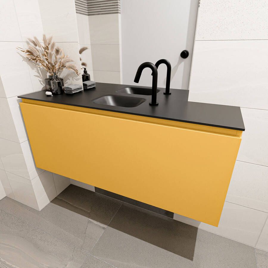 MONDIAZ OLAN Toiletmeubel 120x30x40cm met 1 kraangaten 1 lades ocher mat Wastafel Lex midden Solid Surface Zwart FK75342921 kopen? Sanitairwinkel.nl is dé Mondiaz specialist met een groot assortiment Toiletmeubels. Bestellingen worden gratis verzonden vanaf € 100 en je hebt standaard 30 dagen bedenktijd
